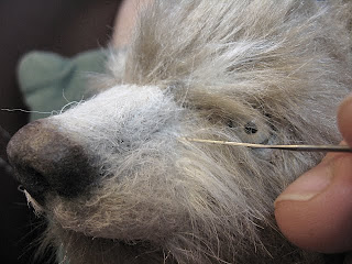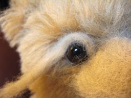 Направьте иглу вверх и назад, когда валяния, чтобы не попасть в глаза и сломать иглу. Также якорь полосы за глаза, по валяния вниз позади глаз на ткани. Эти глаза таксидермисты нести глаза. Они плоские поддержал. У меня есть иглы скульптурные розетки, и приклеить их сюда я использую ту же технику для регулярных глаза медведя. Я также закончить век с четким герметик акриловый, для меня это помогает со штриховкой крышку, держит его очень твердым.